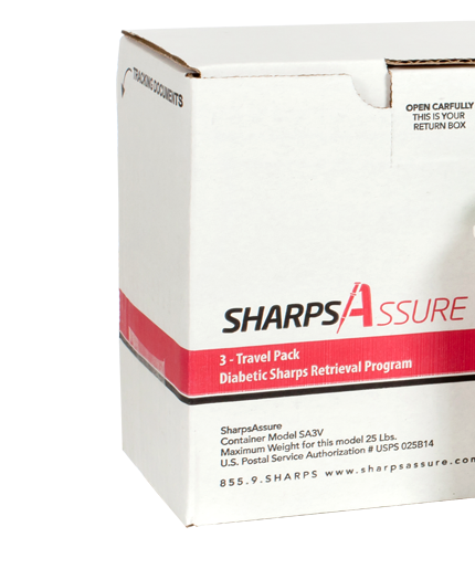 The VOYAGER® Mail-Back Kit comes as a three-pack set, with three FDA-approved sharps collection container and a secure mail-back box that fits all three containers.